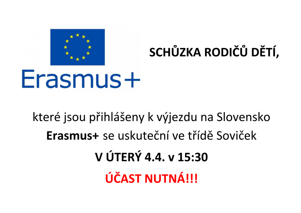 Informační schůzka pro rodiče k výjezdu na Slovensko v rámci projektu Erasmus+